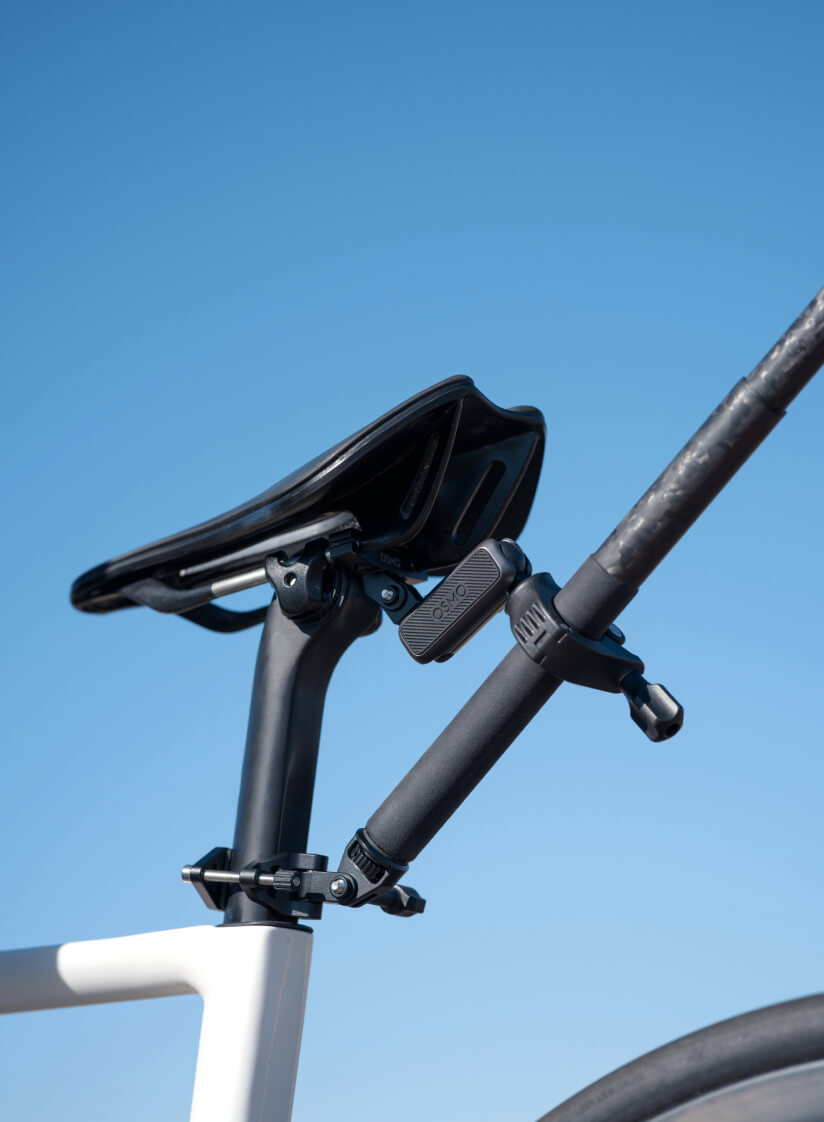 可將 Osmo Action 車座支架輕鬆安裝在自行車車座底部。輕鬆錄製騎行畫面。