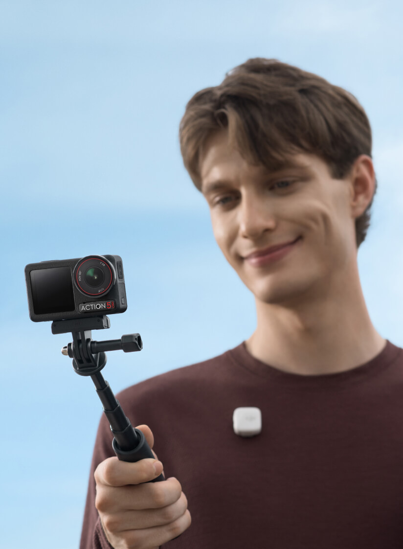 DJI Mic Mini 發射器小巧輕便,佩戴時幾乎無感。具備兩檔降噪、自動限幅防爆音和穩定傳輸功能,400 公尺內收音無憂,適用於騎行 Vlog、多人互動等收音場景。更有 48 小時超長續航,騎行創作更自在。